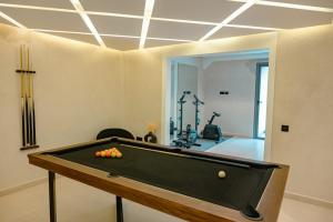 Cette villa avec climatisation se compose de 4 chambres, d'un salon, d'une cuisine entièrement équipée avec un réfrigérateur et une machine à café, ainsi que de 5 salles de bains avec un bidet et une douche. Des serviettes et du linge de lit sont mis à votre disposition.