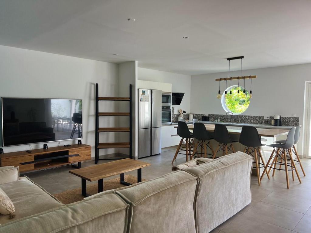 Cette villa avec climatisation se compose de 4 chambres, d'un salon, d'une cuisine entièrement équipée avec un réfrigérateur et une machine à café, ainsi que de 2 salles de bains avec une douche et un bain à remous. Une télévision à écran plat est à disposition.