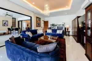 The spacious villa with a terrace and mountain views has 7 bedrooms, 5 living rooms, a flat-screen TV, an equipped kitchen with a dishwasher and an oven, and 9 bathrooms with a walk-in shower. A private entrance leads guests into the villa, where they can enjoy some fruits. The villa offers bed linen, towels and ironing service.