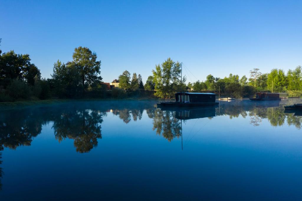 Les bateaux sont installés sur un étang de 3 hectares et sont soit ancrés au milieu de l’eau (accessibles en barque), soit amarrés au ponton (accessibles à pied). Chaque hébergement dispose d’une terrasse meublée, d’un espace salon, d’une kitchenette et d’une salle de bain privative. Depuis tous les bateaux, vous profiterez d’une vue imprenable sur l’eau.