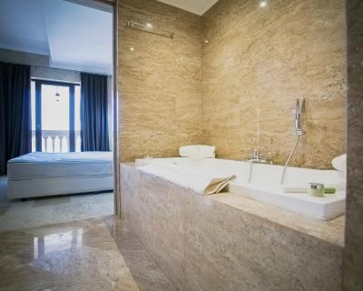 Cette chambre spacieuse et luxueuse dispose de la climatisation, d'une télévision par satellite à écran plat et d'un minibar. La salle de bains privative est pourvue d'une baignoire et d'articles de toilette gratuits. Le balcon donne sur les installations de l'établissement et sur les environs.