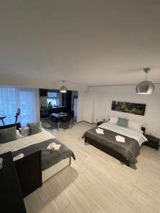 Spacious and Modern: Welcome to Bucharest Airport Residences & Therme-SELF CHECK-IN, a spacious and recently renovated apartment in Otopeni. The property features a garden and terrace, complemented by free WiFi.