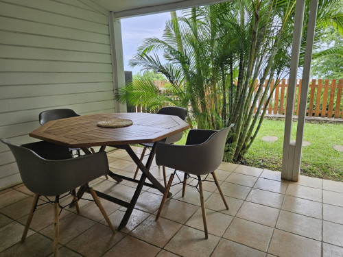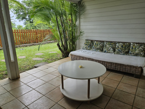 L'espace varangue est équipé d'une table pour 4 personnes et d'un canapé extérieur.