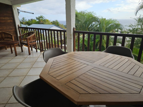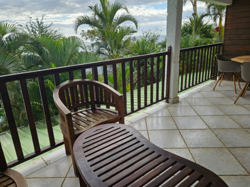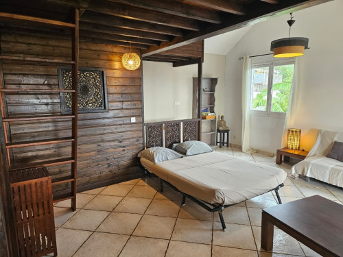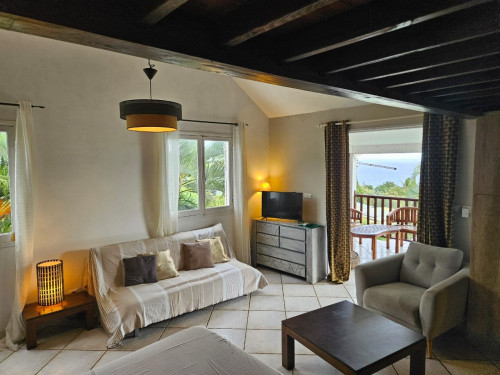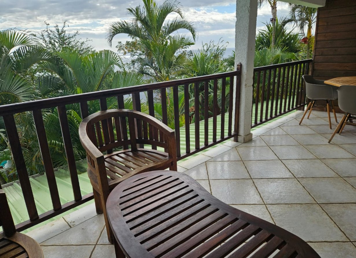 Le meublé Ylang6 est un studio mezzanine de 30 m² + 15m² de terrasse situé à l'étage avec une vue panoramique sur la mer et les couchers de soleil. Il est lumineux et très aéré.
