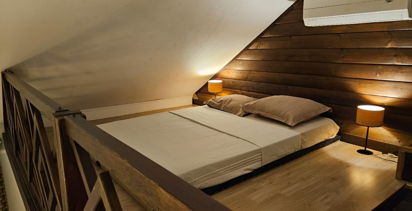 Il dispose d'un lit de 140 sur la mezzanine et d'un BZ de 140 sous la mezzanine.