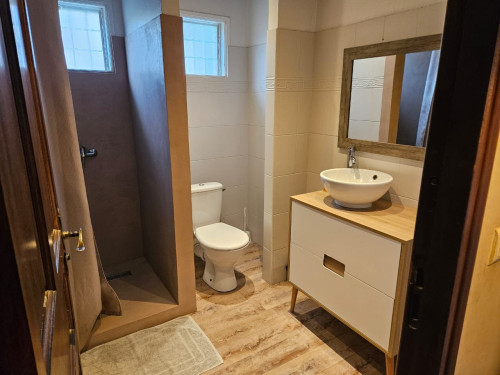 Il dispose d'une salle de bain avec douche à l'italienne en béton ciré.