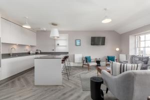There are private bath and shower rooms with soap, hair & body shampoo, toilet rolls, and towels. The apartments also feature lounges, dining areas and kitchens with tea, coffee, sugar, soap, washing up liquid, washing powder, dishwasher tablets, and rubbish bags.