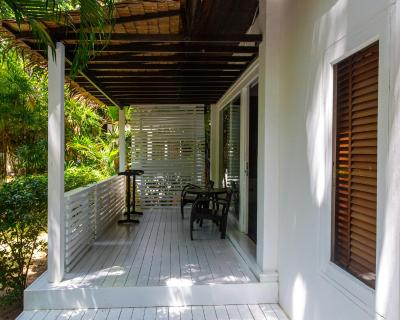 The villas are surrounded by gardens and have a private decking area. All of the living areas include a flat screen satellite TV and a large sofa. Each villa also includes a minibar and tea and coffee making facilities.