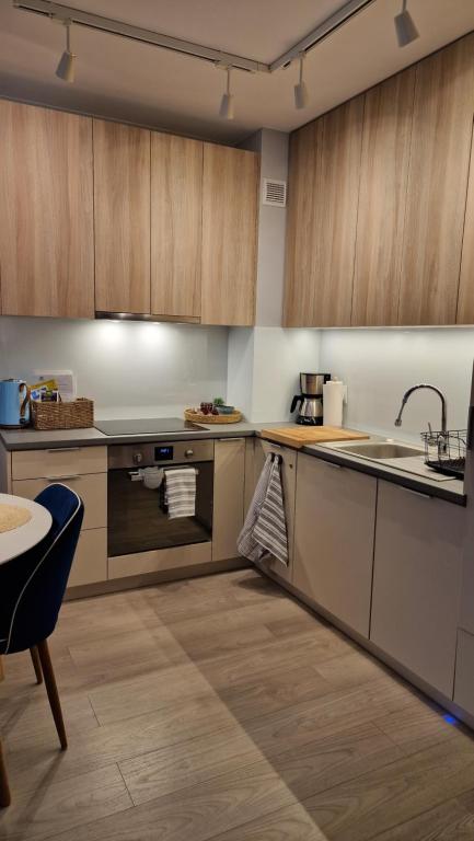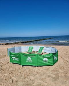 Comprising a garden and a bar, Zielony Domek Apartament w Rewalu 42 m2, tylko 40 metrów od plaży is a recently renovated accommodation in Rewal located close to Rewal Beach. This beachfront property offers access to a patio, free private parking and free WiFi. The apartment features a hot tub and a lift.