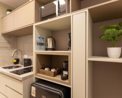 Tous les hébergements comprennent une télévision à écran plat ainsi qu'une kitchenette entièrement équipée comportant un réfrigérateur, un micro-ondes et une machine à café. Une plaque de cuisson et une bouilloire sont également disponibles.