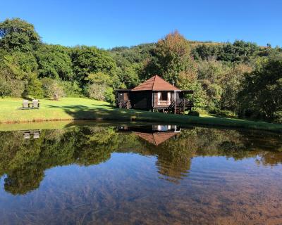 This spacious, open plan honeymoon chalet has beautiful view over the dam. This tastefully decorated chalet offers you the comfort of a huge king size bed and also has a fully equipped kitchen with fridge/freezer combo and mini-stove. The private veranda comes with BBQ facility and offers stunning forest views to sit and relax after a long exciting day on the panorama route. For those cold winter nights there is an open fireplace and electric blankets for your convenience.