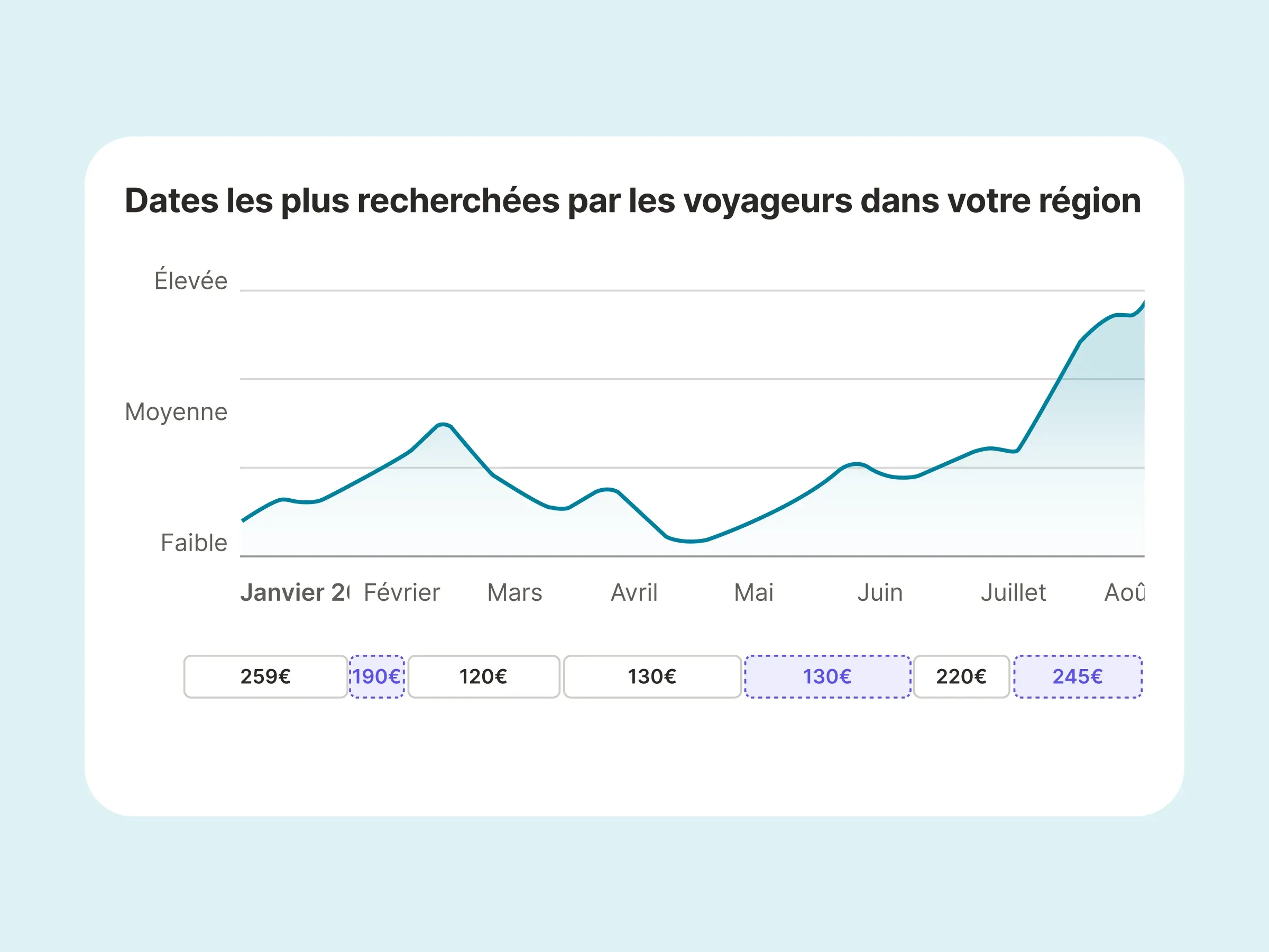 Vous disposez d'un tableau de bord unique pour tout gérer : calendriers, voyageurs, tarifs et paiements.