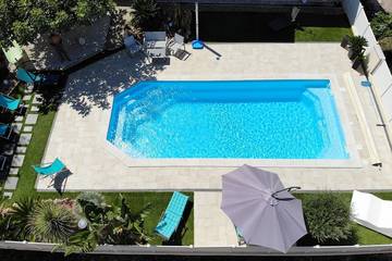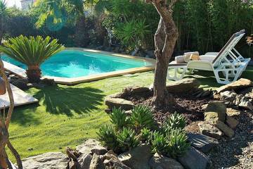 Le logement : Coup de cœur assuré pour cette villa contemporaine, dans un cadre exceptionnel sans aucun vis à vis, entre collines et mer, vue panoramique au cœur du Domaine de Valcros, à deux pas du golf. L'Eden, cette très belle villa contemporaine vous ouvre ses portes pour des vacances inoubliables dans le var, en famille ou entre amis... Au programme, calme et douceur de vivre, farniente autour d'une piscine chauffée, longue de 13 mètres...Une grande terrasse est à votre disposition pour profiter des belles et longues soirées d'été et des splendides couchés de soleil. A 15 mins du centre de la Londe-Les-Maures, 16 mins de la plage de l'Argentière, 20 mins de la plage de L'Estagnol, des plages de Hyères, de l'Aeroport de Toulon-Hyères et de l'embarcadère pour les îles d'Or (Porquerolles, Port-Cros, Levant). De nombreuses activités sont à votre disposition, golf, route des vins, sorties culturelles, randonnées, balades à cheval, visite des îles d'Or, location de bateau, jet ski, vélo, kayaks, paddle, cours de kite, wing-foil, planche à voile, plongées... Entièrement climatisée, elle se compose d'un vaste espace salle à manger avec une belle cuisine américaine totalement équipée, dans son prolongement, un espace séjour cosy, le tout donnant sur une immense terrasse vue mer et piscine. Une mezzanine offrant un coin lecture et détente et un bureau équipé d'une connexion internet