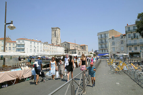 La première église faut bâtie en 1157, en même temps que l'ancienne église Saint Barthélemy. Un incendie l'a détruite en 1419. La reconstruction est achevée en 1492. Cette église fut construite en style gothique flamboyant, il n’en reste aujourd’hui plus que le clocher et des fragments de portail. Ce magnifique bâtiment fut démoli par les Protestants en 1568 pour conforter les remparts de la ville. Le clocher fut conservé à des fins militaires, pour servir de tour d'observation, voire de plateforme pour canon. Le portail s'écroule en 1573. De 1650 à 1669, on reconstruisit St Sauveur. Elle fut emporté par l'incendie de 1705. On la reconstruit à nouveau au XVIIIe siècle. Des travaux la transforment encore (couverture de la nef, tribune). Sous la Révolution, elle devient magasin aux vivres de la Marine. Enfin, elle est rouverte au culte en 1802.