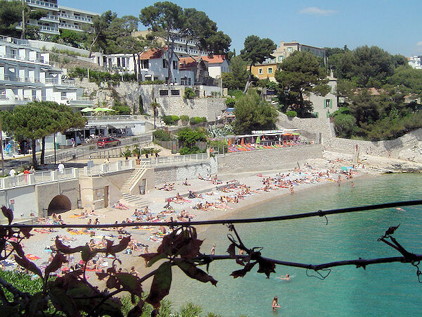 Petite plage décentrée par rapport au centre ville, elle offre une vue imprenable sur le port de Cassis et sur l'impressionnant cap Canail.